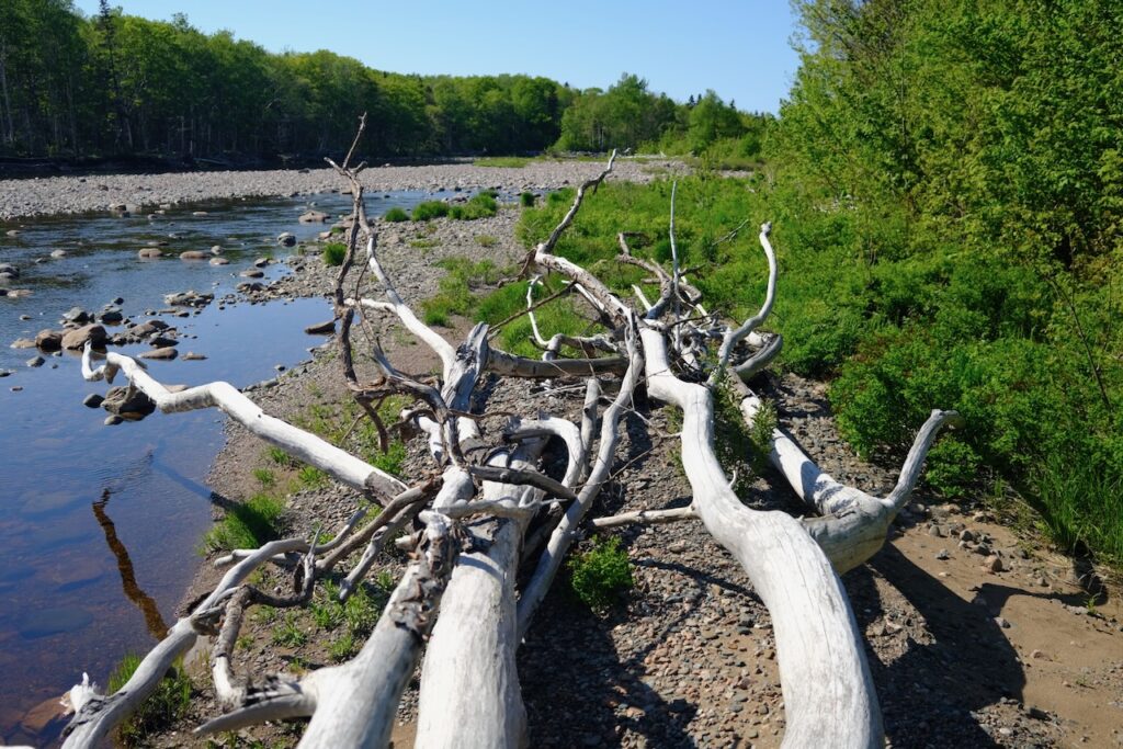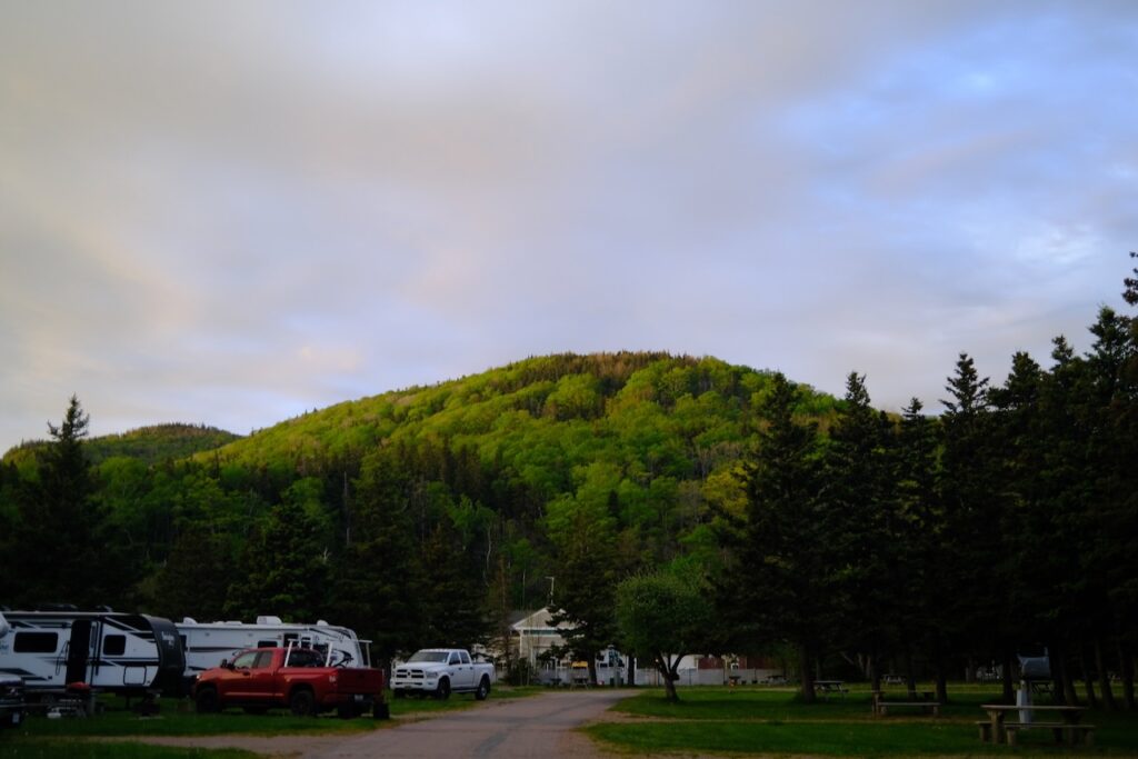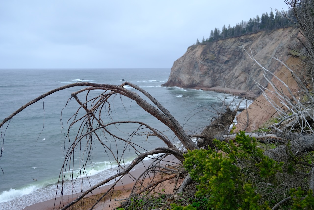 Ten days after my first trip to Cape Breton Highlands Park last May, I travelled to the other side of the Highlands and stayed in an oTentik at the Chéticamp campground. The weather was so different! While Broad Cove was cool and grey, Chéticamp (after a day of suêtes winds) was sunny and hot–I had to go into town to buy thrifted shorts and a hat. What a difference 10 days and the west side of the mountains make in spring on Cape Breton Island! Once again I brought a borrowed Fuji x100v with me. Here are some of the photos. You can also watch a video of this trip on YouTube.